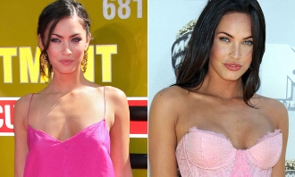 Levantamento aponta que 94% das mulheres acreditam que colocar próteses mamárias pode aumentar a sua autoestima. Foto: Antes e depois da Megan Fox.
